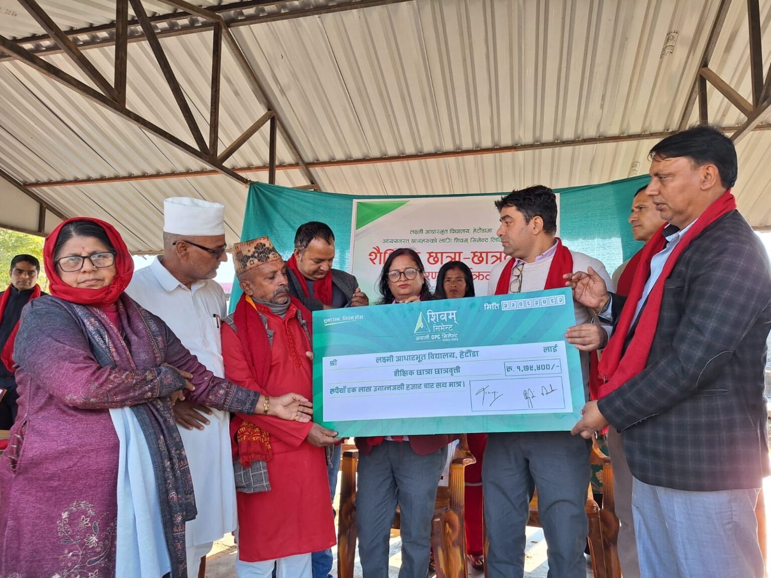 उद्योगले विद्यालयमा शैक्षिक छात्रा– छात्रवृत्ती वितरण कार्यक्रम गर्दै १७ नम्बर वडा सदस्य लेखकुमारी तिमल्सिनाको उपस्थितीमा उद्योगका उपमहाप्रबन्धक राजेन्द्र शर्माले विद्यालय व्यवस्थापन समितिका अध्यक्ष इन्द्रप्रसाद नेपाललाई छात्राबृत्ती वापत भएको रकमको चेक हस्तान्तरण गरेका थिए ।