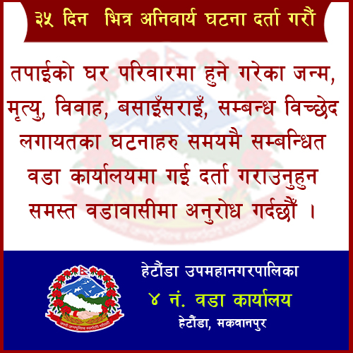 हेटौंडा । हेटौँडा उपमहानगरपालिका–४ मा रहेको लोकतान्त्रिक चौर(हुप्रचौर)लाई सुविधा सम्पन्न र आकर्षक खुला क्षेत्रका रूपमा विकास गरि...